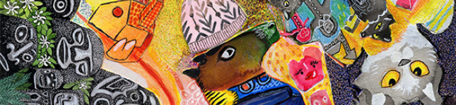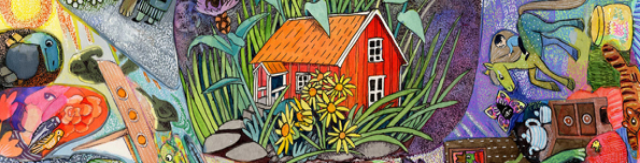 Dans un foisonnement de couleurs et de formes issues tout droit du répertoire féerique de l’enfance, l’artiste et illustratrice jeunesse Charlotte Sjöstrand nous émerveille par ses collages qui font sens.